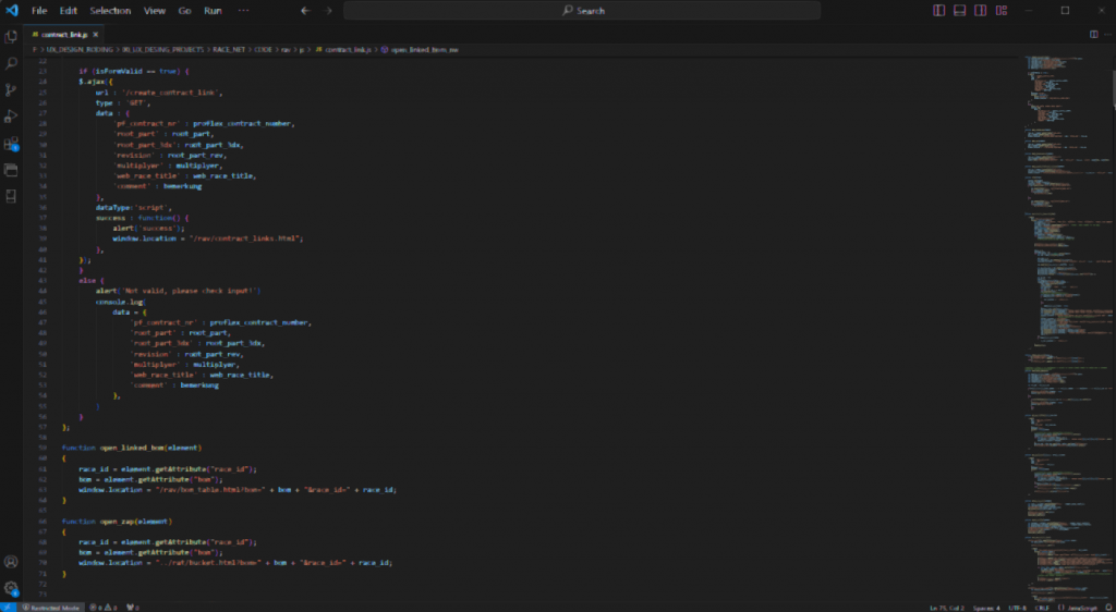 Projektübersicht: RACE-NET ist ein umfassendes System, das ähnlich wie SAP funktioniert, jedoch vollständig auf HTML, CSS und JavaScript mit jQuery aufgebaut ist. Die Daten werden über JSON gesteuert und sind an eine MongoDB-Datenbank angebunden. Ich war verantwortlich für das gesamte Design der grafischen Benutzeroberfläche, das ursprünglich in Adobe XD und später in Figma erstellt wurde, sowie für die komplette Programmierung des Systems. Die Datenbanken wurden extern angelegt. RACE-NET dient der Pflege und Verwaltung von Engineering-Projekten und wird firmenweit eingesetzt.